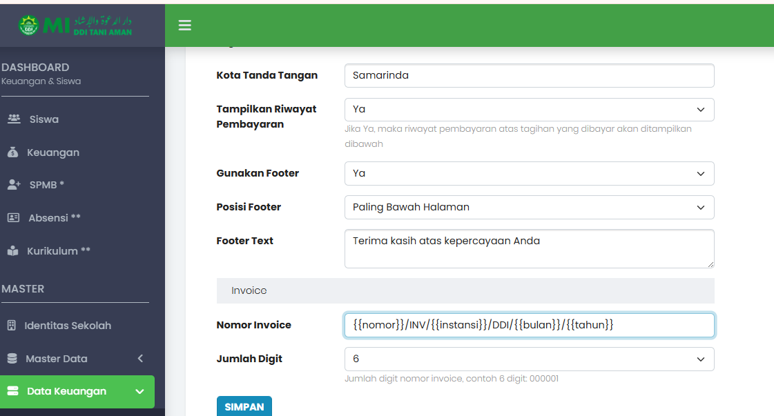 Edit sesuai kebutuhan, untuk Logo dan Nomor Invoice tidak bisa diedit